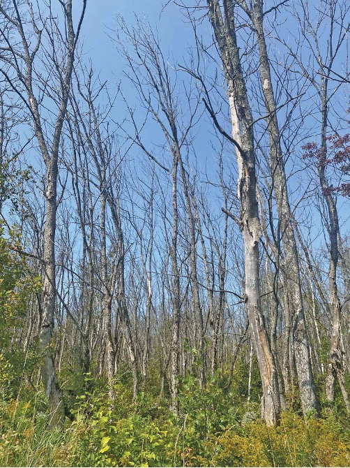 The emerald ash borer isn’t the only one causing damage. The spongy moth, for example, feeds on the leaves of many important native trees, stripping them bare and leaving them vulnerable to disease and death. Meanwhile, invasive plants like periwinkle, garlic mustard, English ivy, and common buckthorn are now common across our forests. These plants spread quickly, outcompete native vegetation and prevent the growth of native seedlings, slowing the natural recovery of forests already stressed by invasive insects. Climate change is making matters worse. Warmer winters and longer, hotter summers allow many invasive species to survive and thrive in our northern climate, where they once could not, accelerating their spread and impact. Across Ontario, many pests and diseases continue to threaten our forests. While some have not yet reached the Saugeen Bruce Peninsula, the damage could be devastating if they do, making prevention incredibly important. You can help by always buying firewood locally, which reduces the risk of transporting invasive insects. Cleaning boots, pets, and gear after a hike prevents the spread of seeds into new areas. Planting native species at home, and reporting or removing invasive ones, allows forests to recover before outbreaks get out of control. The Bruce Peninsula Biosphere Association is working to restore a wetland damaged by a former fish farm and invasive species. We are always looking for volunteers to join us in planting native trees and protecting the environment we all depend on. In the end, small actions like these add up, making a big difference in keeping our forests healthy for the future. |